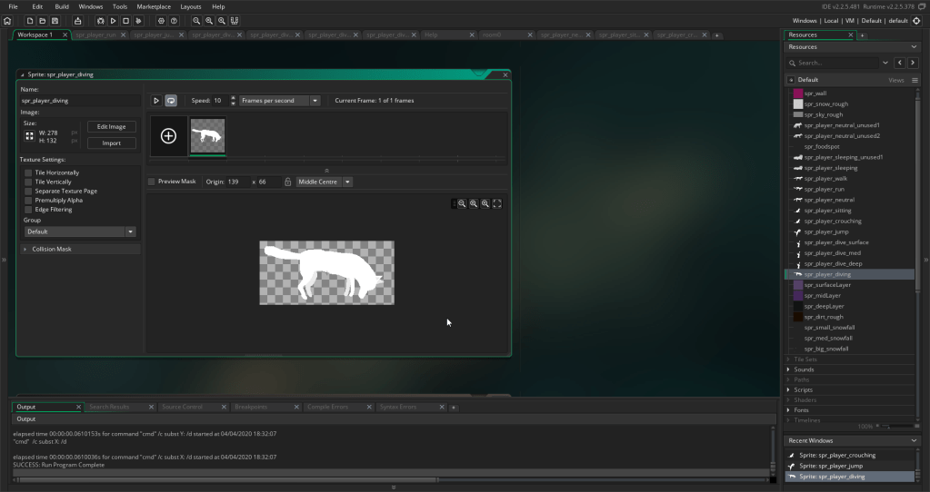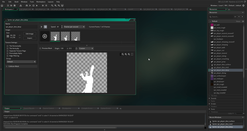 Next up I’ll probably be looking to finish the running animation, creating a dive animation, refining the jumping mechanic some more and other bits and bobs I come across. I’ll be back when I have more progress to report and when I get around to continuing F:AJS.